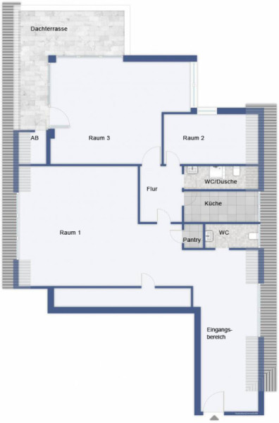 Die Zimmer und der Flur sind mit einem Laminatfußboden in Holzoptik versehen, außer Raum 3 ist mit einem Teppichboden ausgelegt ist, sowie Küche und Bad,